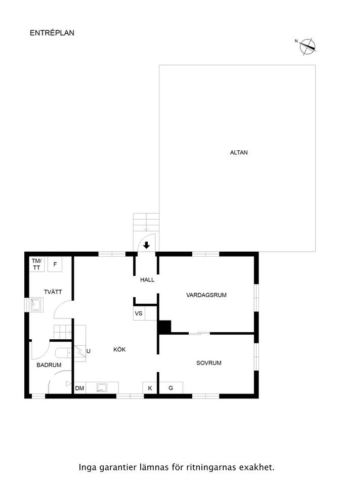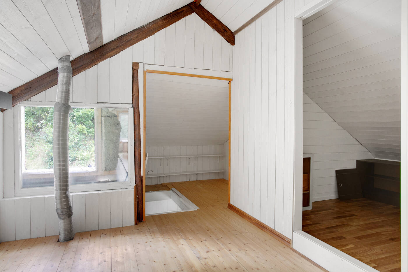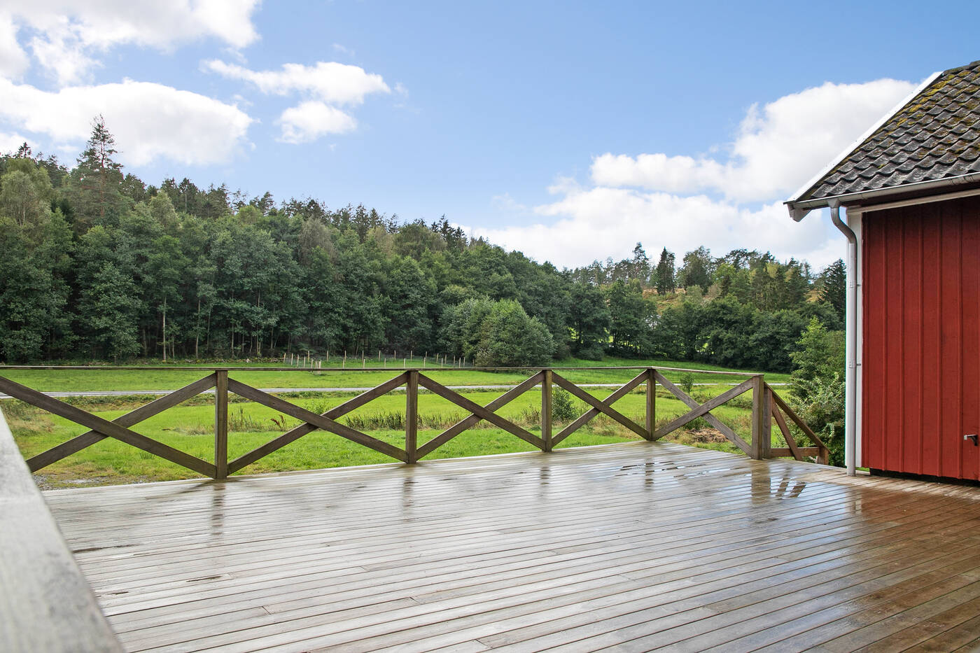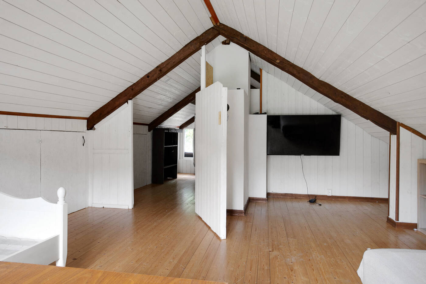 Välkommen in i entréhallen via en stor solig altan. Från hallen kommer du in i en storstuga med vedspis och ekparkettgolv. Innanför storstugan finns första sovrummet också med parkettgolv. Från hallen når du köket med vedspis förutom normala vitvaror, också med parkettgolv. Till höger finns en helkaklad tvättstuga med tvättpelare och ett helkaklat badrum med WC, tvättsäll och duschhörna. Boyta c:a 60 kvm. En brant trappa leder till en loftliknande övervåning med hall, förråd och sovrum. Boyta c:a 40 kvm. Vidbyggd ved-/ redskapsbod. Härlig tomt om 1001 kvm Boyta 60 kvm med fruktträd och gräsmatta för barn med spring i benen.